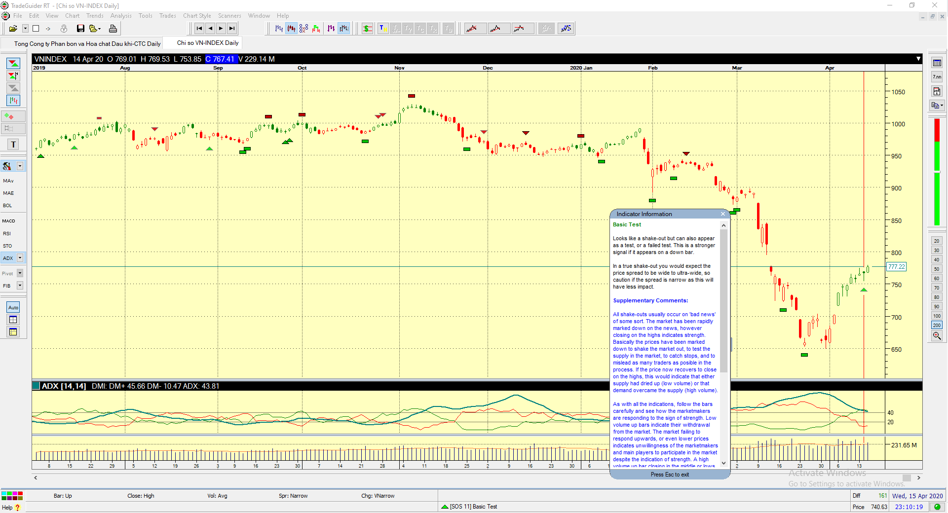 Như vậy, chúng ta đang có tín hiệu rất mạnh. Với giá đóng cửa của thanh giá thứ hai (ngày 15/4/2020) ở đỉnh cao nhất ngày và khối lượng cao hơn ngày hom qua. Đây là cú rủ bỏ khá đẹp.
