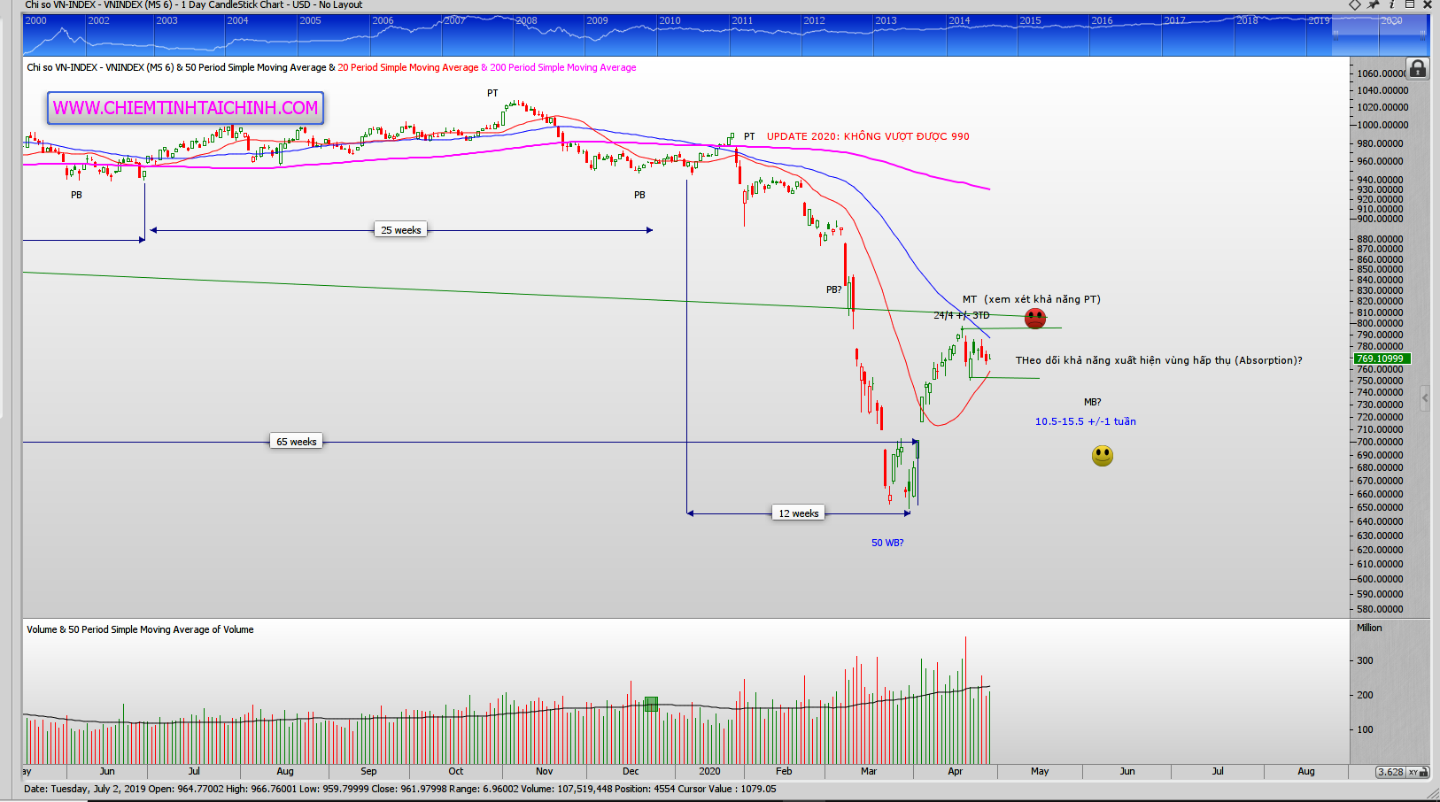 Chỉ số VN-Index vẫn có 3 ngày phân phối và triển vọng thị trường vẫn là Uptrend. Mặc dù có 3 ngày phân phối nhưng tôi đang nhìn thấy một sự phân phối có trật tự, chứ không phải là hành động bán hoảng loạn của big boy. Thậm chí, bạn đọc nên lưu ý khả năng đây chính là vùng Absorption (hấp thụ) của bigboy đối với nhỏ lẻ đã bắt trúng đáy nay muốn chốt lãi. Chúng tôi nghi ngờ khả năng này khi không có những cú đà bán tháo mạnh sau những phiên phân phối mạnh. Ví dụ như không có ngay bán tháo mạnh sau ngày phân phối 21/4/2020. Vẫn còn quá sớm để kết luận nhưng chúng tôi sẽ theo dõi kịch bản này và chờ đợi sự xác nhận của thị trường.