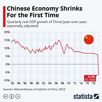 GDP quí I vừa qua của Trung Quốc đã giảm xuống mức -6,8%. Đồ họa của Statista