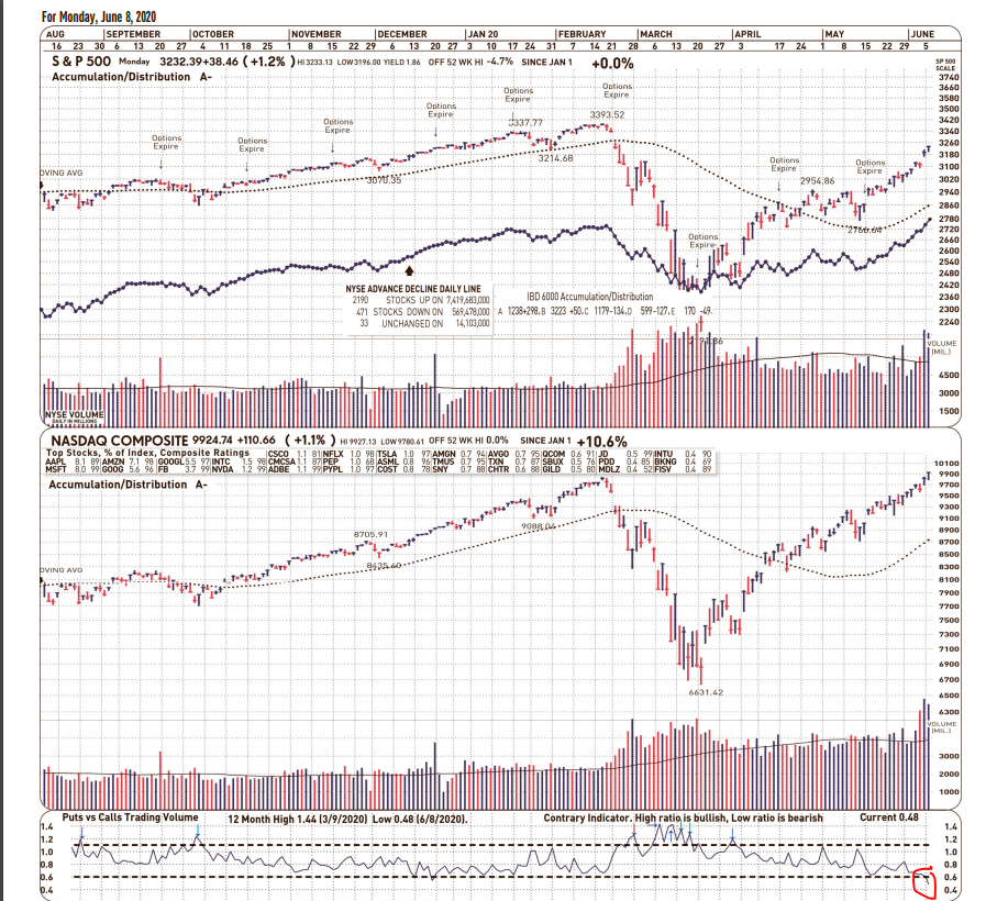 Các chỉ số đo lường tâm lý thị trường (sentiment) đang cho thấy sự lạc quan quá mức. Put-Call volume ratio đang giảm xuống dưới 0.5, là mức rất lạc quan.