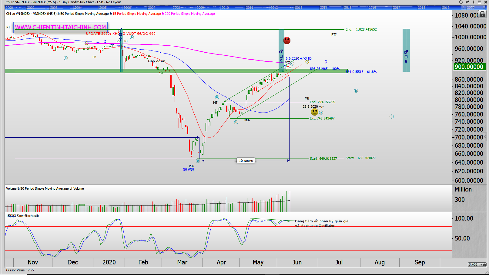 Chúng tôi cũng lưu ý thêm, VN-Index đang ở trong vùng thời gian đảo chiều 6.6.2020 +/-3 ngày giao dịch theo nghiên cứu chu kỳ và hiện tượng địa tâm.