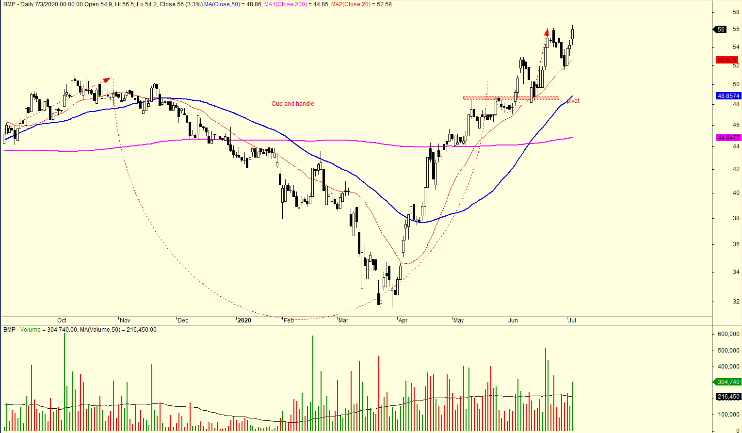 Các cổ phiếu leader mà chúng tôi đề xuất đang hoạt động tốt. BMP thiết lập đỉnh cao mới và lấy MA20 ngày làm điểm nảy, thể hiện hành động giá quả bóng tennis. Cổ phiếu BMP đã tăng 15% từ điểm mua của mẫu hình Cup and handle theo CANSLIM.