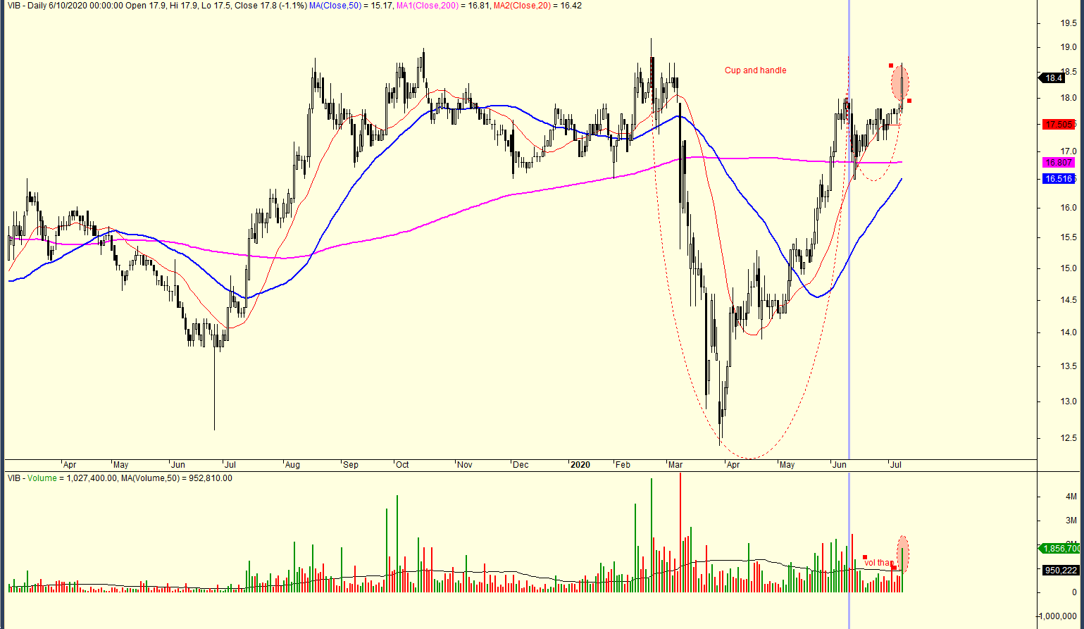 VIB trở lại điểm mua bằng điểm breakout mẫu hình chiếc cốc-tay cầm.