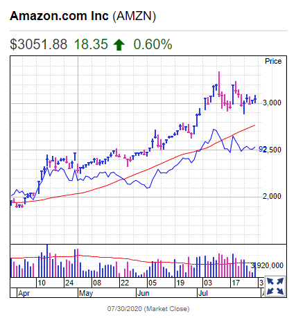 Các cổ phiếu này đang tiếp tục tăng điểm tốt sau các điểm breakout từ các nến giá kiến tạo. AMZN có báo cáo lợi nhuận quý 2 vượt dự báo và tiếp tục tăng vượt xa điểm mua 1,416 từ mẫu hình Cup and handle (đã breakout vào cuối tháng 5). Câu chuyện tương tự cũng đang xảy ra với Apple và Facebook