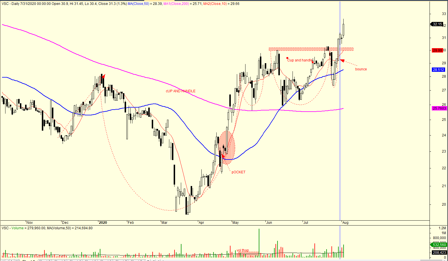 Cổ phiếu VSC tiếp tục tăng giá sau điểm breakout mẫu hình Cup and handle.