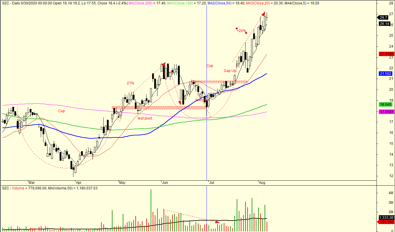 Các cổ phiếu khác như SZC, TCM, DHC, VSC vẫn đang hoạt động tốt sau các điểm mua đề cập ở các bản tin trước. Cổ phiếu SZC được kích hoạt quy tắc 8 tuần (xem tại cuốn sách Làm Giàu Từ Chứng Khoán) của Oneil khi giá tăng 20% trong thời gian chưa tới 3 tuần, từ nền giá số hai.