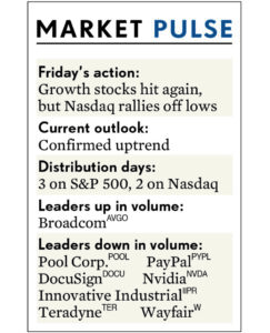 Nhật Báo IBD ngày 4/9/2020 vẫn duy trì triển vọng thị trường là “Xu Hướng Tăng Được Xác Nhận” với 3 ngày phân phối ở SP500 và 2 ngày phân phối ở Nasdaq. Nasdaq bật lên khi chạm MA50 ngày. Đây là hành động của phe Bull.