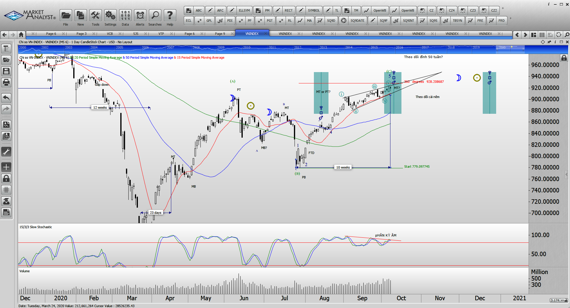 Đã 10 tuần trôi qua kể từ đáy 27/7/2020 và đây là thời điểm chúng tôi tìm kiếm đỉnh MT, vốn sẽ được xác nhận khi giá cắt xuống MA15 ngày hoặc MA20 ngày.