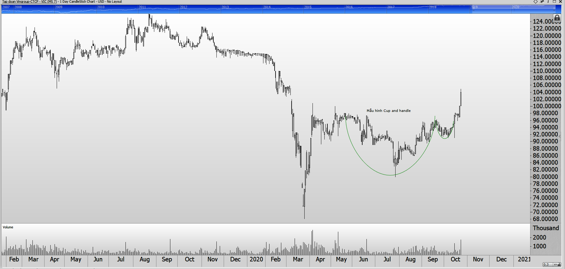 Thị trường được kéo bởi mã VIC, sau khi breakout Cup and handle nhưng VIC không nằm trong danh sách mua của chúng tôi bởi sự giảm tốc trong tăng trưởng lợi nhuận trong hai quý gần đây. Lợi nhuận quý 3 của tập đoàn này chưa được công bố.