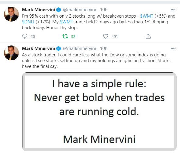 Phù thủy Mark Minervini đang giữ 95% tiền mặt và cho rằng các cổ phiếu đang có tín hiệu mua yếu.