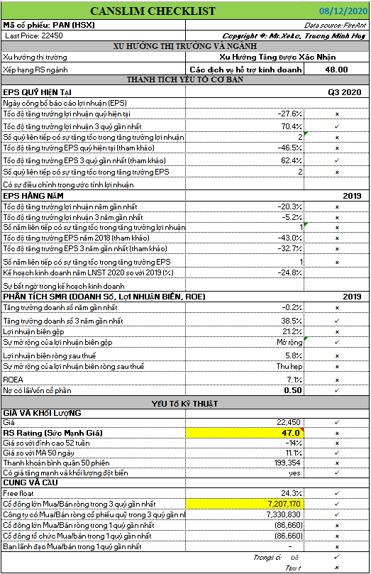Mặc dù vậy, các yếu tố cơ bản của PAN vẫn không thực sự hỗ trợ : doanh thu quý III tăng trưởng 35% so với quý cùng kì năm trước, lợi nhuận sau thuế trong quý gân nhất có sự tăng tốc nhưng tại quý hiện tại vẫn giảm 28% so với cùng kì. Lợi nhuận biên gộp trong 3 quý gần nhất cũng thu hẹp từ 19% về 15%. Chỉ số RS ở mức 47.
