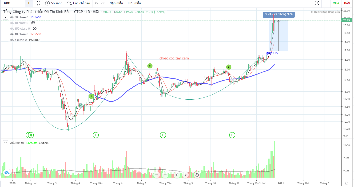 Update KBC : KBC là điểm sáng hiêm hoi trong phiên giao dịch ngày hôm nay khi đóng cửa tăng trần. Như vậy, KBC đã tăng giá hơn 22% kể từ điểm mua Gap Up mà chúng tôi đề cập trong bản tin ngày 17/12/2020/