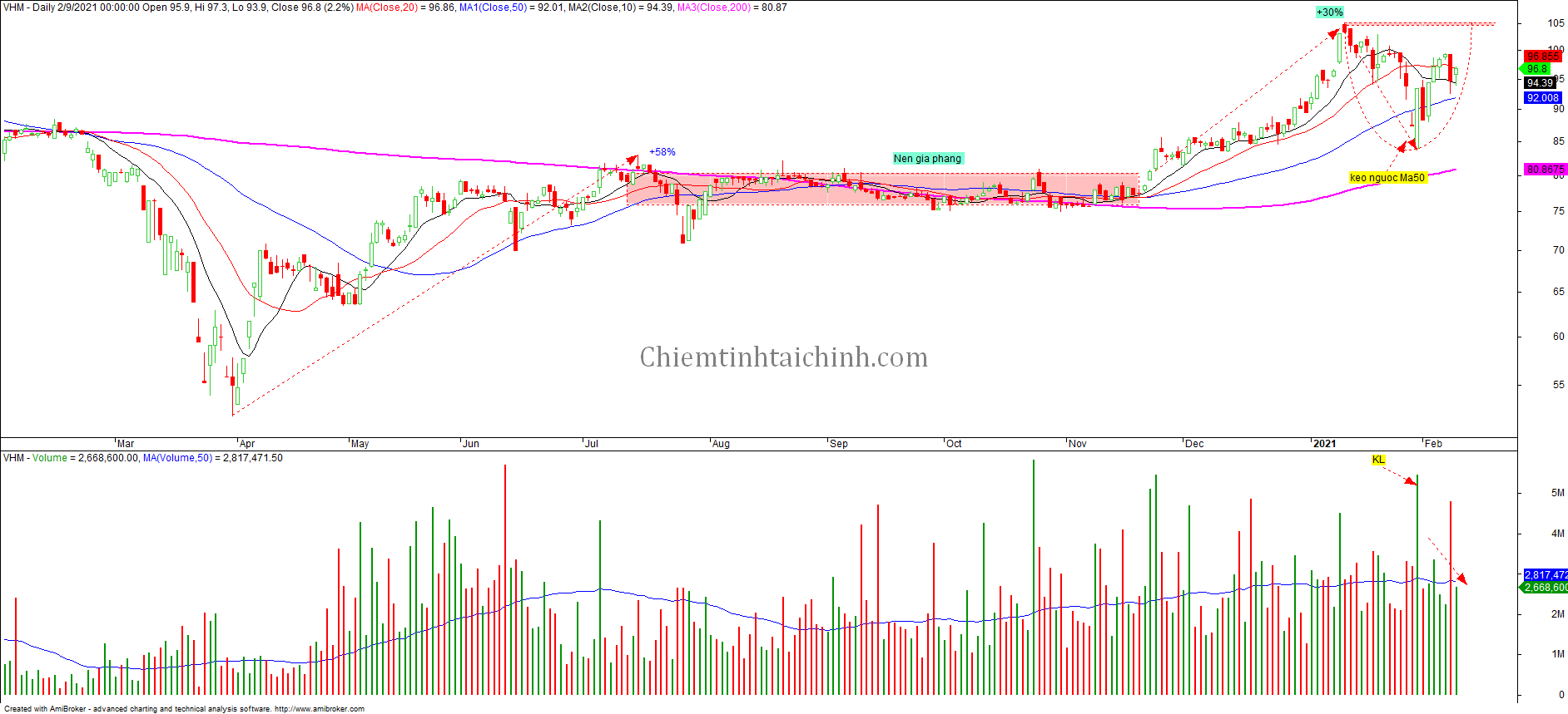 Cổ phiếu VHM, chúng tôi vẫn đang quan sát mẫu hình “Cốc tay cầm”, cổ phiếu đang kéo ngược và tăng trở lại MA20 ngày. Tuy nhiên khối lượng tăng trở lại ở mức thấp, nếu tăng trở lại với khối lượng tăng mạnh trên bình quân 50 phiên mới là tín hiệu có dòng tiền lớn nhập cuộc.