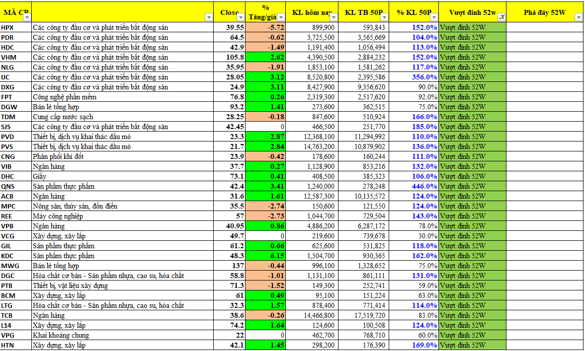 Số lượng cổ phiếu vượt đỉnh 52 tuần phiên ngày 22/2/2021 đang có xu hướng tăng với tâm điểm dòng : Bất động sản, ngân hàng, dầu khi, khu công nghiệp hạ tầng là chủ yếu và một số cổ phiếu ngành bán lẻ. Tiêu biểu như: VHM, HDC,L14, IJC, ACB,TCB, DGW,MWG,PVS,PVD…. Nhận diện sóng ngành không phải là công việc chủ quan mà hoàn toàn có phương pháp để làm. Mark hoàn toàn dựa vào bảng điện để đọc sóng ngành.