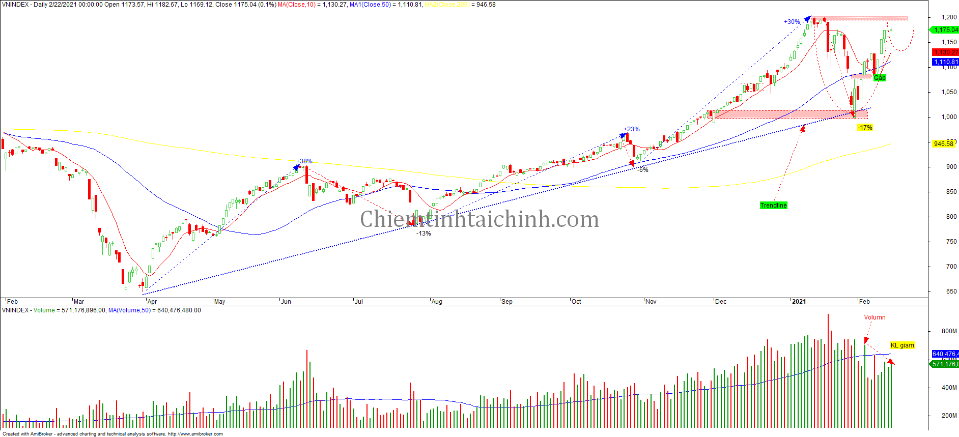 Xem thêm bình luận về mẫu hình của chỉ số VNIndex: [Nhìn Lại Tuần Qua, 19/2/2021] Nhóm ngành ngân hàng vẫn dẫn dắt đầu tàu VNIndex giữ được xu hướng tăng