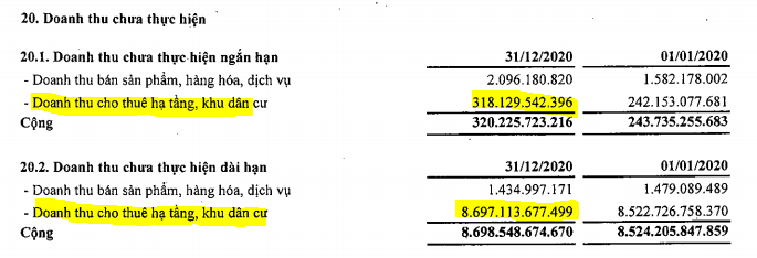 Tính đến thời điểm 31/12/2020, cổ phiếu VRG có hơn 8 ngàn tỷ doanh thu chưa thực hiện dài hạn .