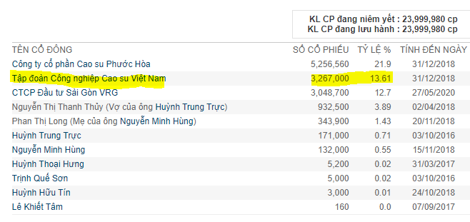 Về cơ cấu cổ đông của VRG khá cô đặc, hơn 96% được nắm trong cổ đông lớn là “Ủy ban quản lý vốn Nhà nước tại doanh nghiệp “ . Đây cũng là điểm mà nhiều nhà đầu tư kỳ vọng VRG sẽ tiếp tục thoái vốn công ty con mang lại lợi nhuận cho công ty . Tính đến thời điểm hiện tại GVR có 103 công ty con, 17 công ty liên kết, hoạt động trong các lĩnh vực liên quan tới trồng, chăm sóc, khai thác cao su, chế biến sản phẩm cao su, phát triển hạ tầng khu công nghiệp…… Trước đó, GVR đã thoái vốn tại Công ty cổ phần Xây dựng và Tư vấn đầu tư, Công ty cổ phần Phát triển đô thị và Khu công nghiệp Cao su Việt Nam, Công ty cổ phần Xây dựng và Tư vấn đầu tư.