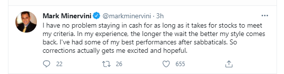 Phù thủy Mark Minervini vẫn giữ quan điểm thận trọng và ôm tiền.