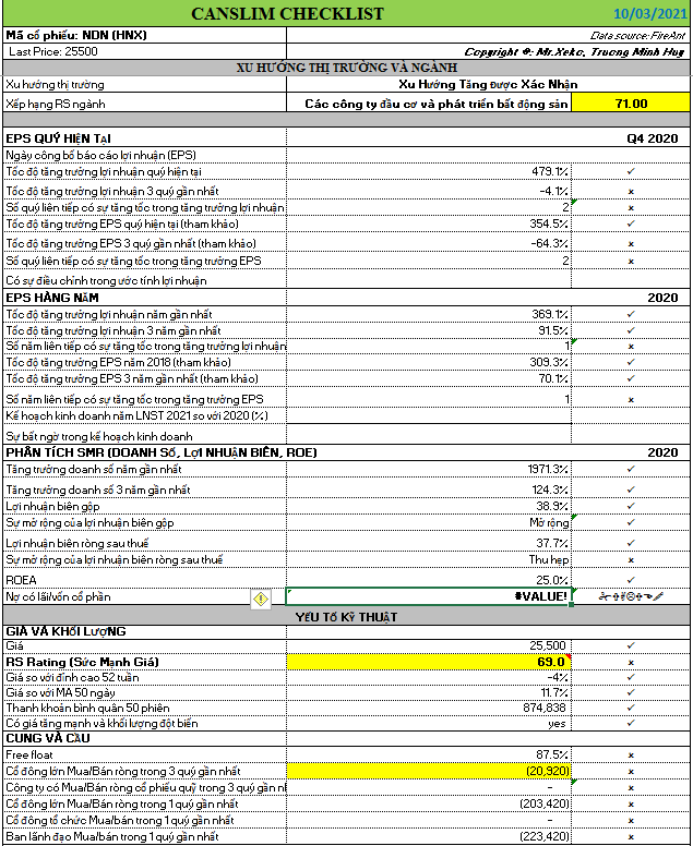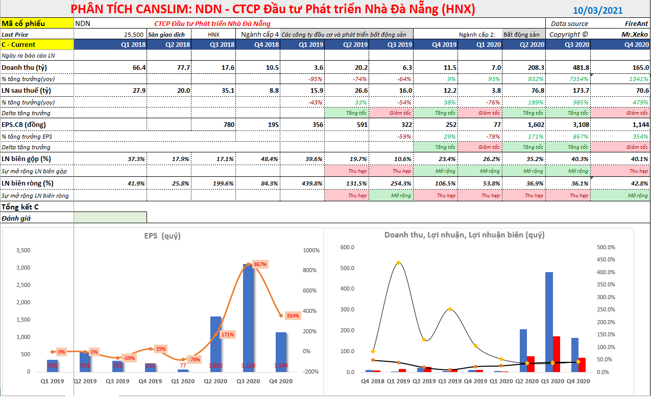 NDN cũng đáp ứng tiêu chí chữ A theo CANSLIM khi có lợi nhuận sau thuế đạt 321 tỷ đồng, tăng 369% so với năm 2019.
