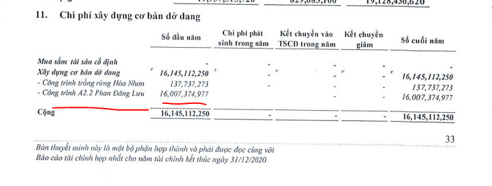 Cụ thể, chi phí xây dựng cơ bản dỡ dang của công trình A2.2 Phan Đăng Lưu vẫn đứng yên ở mức 16 tỷ đồng, không hề nhúc nhích so với cuối năm ngoái.