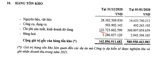 Báo cáo tài chính quý 4/2020 cho thấy tồn kho giảm mạnh từ 560 tỷ đầu năm xuống còn 132 tỷ. Khả năng dự án Nhiệt Điện Vĩnh Tân 4 đã được nghiệm thu.