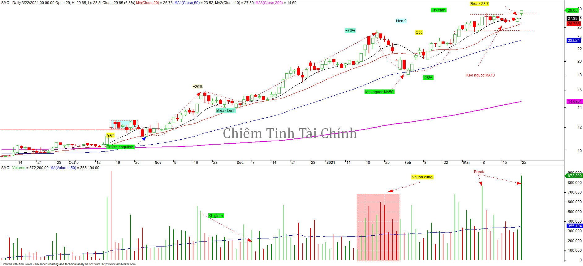 Ngoài ra một yếu tố khác làm chất xúc tác giúp SMC tăng điểm mạnh phiên 22/3/2021 chính là việc điều chỉnh kế hoạch lợi nhuận năm 2021 từ 160 tỷ lên 300 tỷ. Tăng gấp đôi so với kế hoạch ban đầu. Điều này đã làm nhà đầu tư đánh giá lại kỳ vọng đối với SMC .