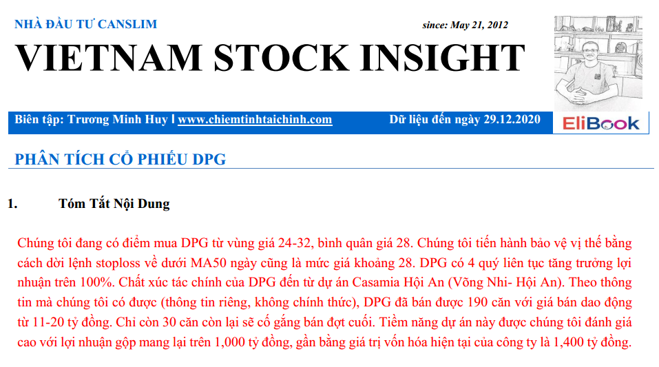 Một số thông tin về cổ phiếu DPG trong báo cáo VIET NAM STOCK INSIGHT Của chúng tôi.