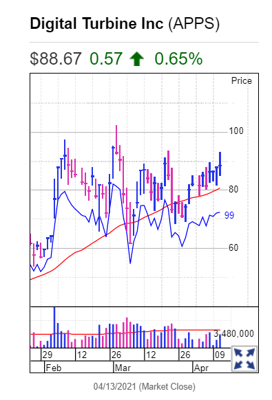 Ở lĩnh vực phần mềm doanh nghiệp,  Digital Turbine (APPS) đang hình thành Nền Giá Đầu Tiên kể từ khi có điểm phá vỡ vào tháng 6.2020 (Theo dịch vụ nhận diện mẫu hình Market Smith). Vui lòng xem chuyên mục Option Story (Câu Chuyện Hợp Đồng Quyền Chọn) về các hợp đồng quyền chọn mua đáo hạn tháng 9 mang lại một cách ít tốn kém để xây một vị thế mua ở cổ phiếu AAPS như thế nào.