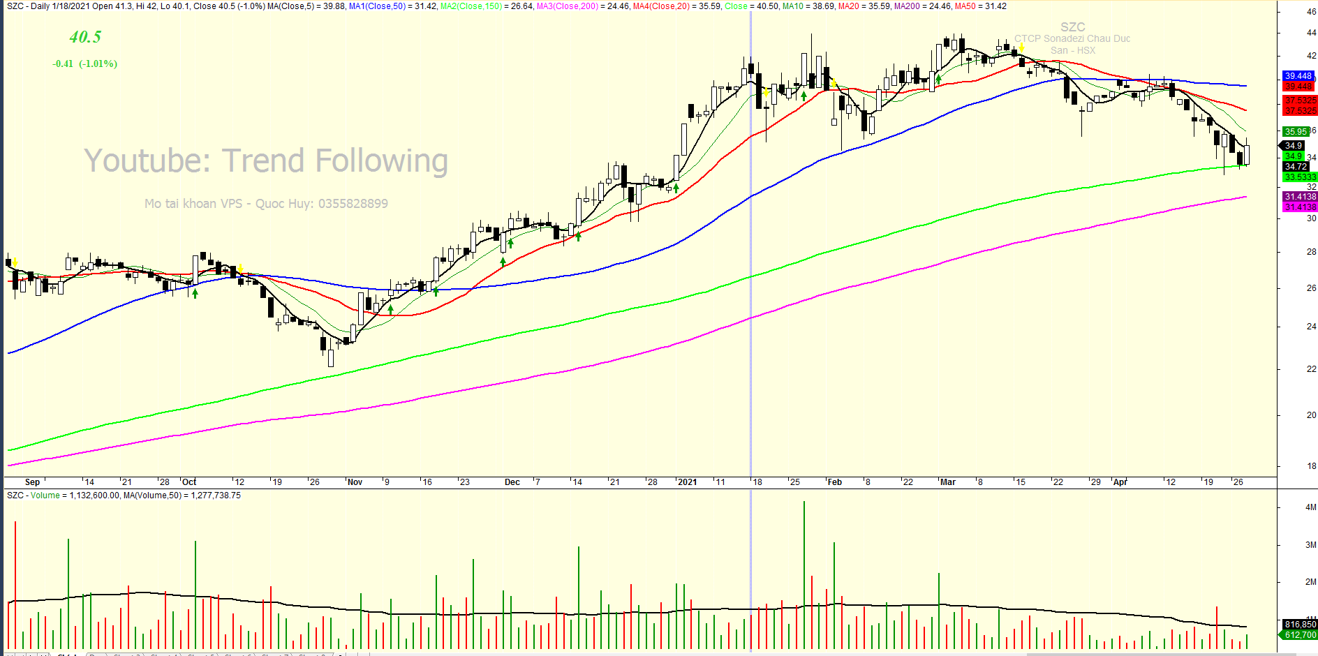 Cổ phiếu SZC gãy đường MA50 ngày cho thấy các nhà đầu tư tổ chức đã không còn mặn mà đối với cổ phiếu này. Những nỗ lực tăng giá yếu ớt sau khi bị phá thủng MA50 ngày đang diễn ra đối với cổ phiếu Leader này.