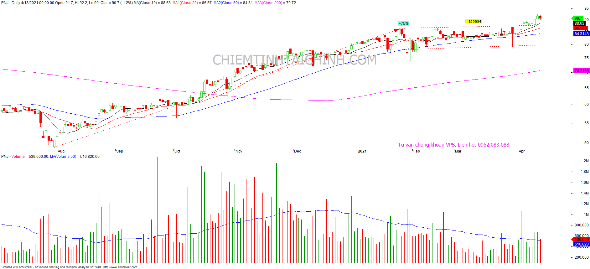 Sau khi breakout mẫu hình Nền giá phẳng, cổ phiếu PNJ hôm nay lại tiếp tục quay trở lại tăng giá mạnh mẽ ngay từ đầu phiên nhưng cuối cùng do áp lực giảm điểm thị trường chung khiến PNJ không có ngày tăng giá thật sự hoàn hảo. Chúng tôi vẫn đang thực chiến lược nắm giữ đối với cổ phiếu PNJ.