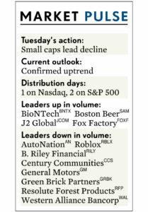 BioNTech đã tăng hơn 20% trong thời gian chưa tới 2 tuần sau khi vượt qua điểm mua 131.10 của vùng củng cố sâu 39%. Điều này kích hoạt quy tắc 8 tuần của William O’Neil. J&J, một cổ phiếu trong chỉ số DJIA, đang tạo ra mẫu hình nền giá chống trên nền giá.