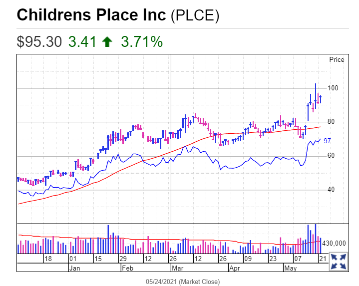 Trong nhóm cổ phiếu hàng tiêu dùng, Medifast (MED) đã tăng 17% từ điểm mua hợp lý 279.56. Children’s Place (PLCE) tăng 12% từ điểm mua 84.33