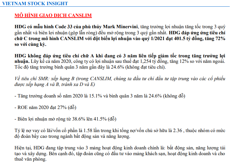 Báo cáo chi tiết của cổ phiếu HDG đã được chúng tôi gửi sớm đến hệ thống khách hàng thuộc nhóm Zalo Nhà đầu tư CANSLIM. Vui lòng liên hệ đội ngũ tư vấn đầu tư của Elibook (liên hệ zalo 0977.697.420) để có thể nhận được những bản báo cáo về những cổ phiếu tốt nhất thị trường.