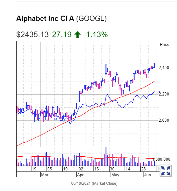 [Nhật Báo IBD, 10/6/2021] SP500 thiết lập đỉnh cao mới khi lạm phát tăng vọt; Gã công nghệ khổng lồ Alphabet có điểm mua phá vỡ (breakout)