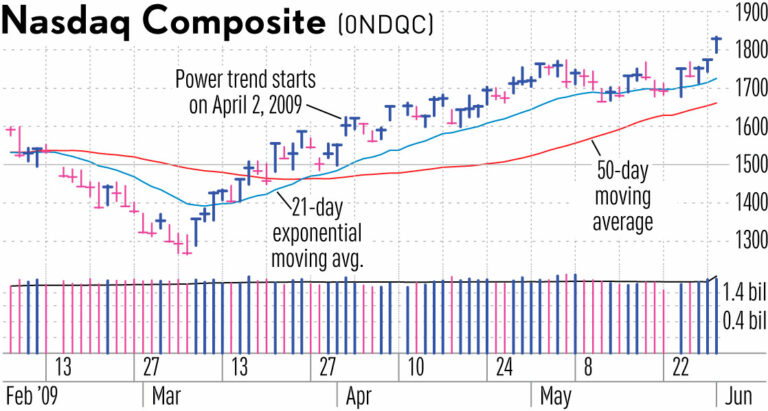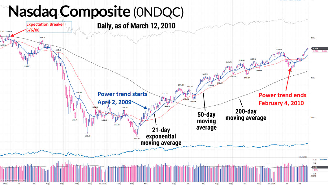 Issac Newton là một fan lớn của Power Trend trong lớp Market School của Nhật Báo IBD. Một thị trường đang chuyển động có khuynh hướng tiếp tục duy trì chuyển động. Power Trend giúp bạn ở trong và giữ bạn ở đó khi thị trường chứng khoán đang có Siêu Xu Hướng mạnh bất thường.