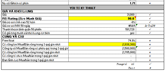 RS= 90, thuộc top cổ phiếu có sức mạnh giá lớn nhất thị trường.