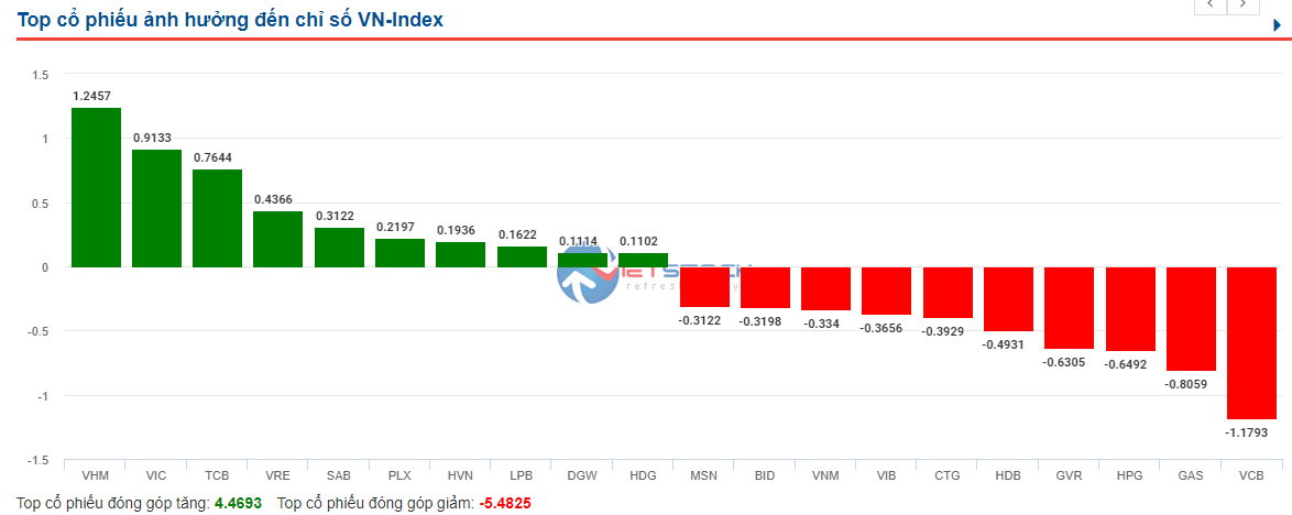 Chỉ số VN-Index giảm 0.2% với thanh khoản hôm nay đạt 395 triệu đơn vị, thấp hơn so với phiên trước. Ngày nỗ lực hồi phục thứ 2 tiếp tục được đếm lại sau khi thị trường đã có liên tiếp 2 phiên tạo đáy mới, nỗ lực hồi phục của thị trường được hỗ trợ ngay tại mốc MA150 ngày. Các nỗ lực hồi phục gần đây đều cho thấy khối lượng thấp càng làm chúng tôi nghi ngờ và thiên về kịch bản thị trường vẫn sẽ tiếp tục tạo đáy mới. Thị trường hôm nay, lực cung và cầu khá tương đồng nhau nhưng phe Gấu đang chỉnh hơn so với phe Bò, thị trường mất đi một ngày tăng giá bởi sự giảm điểm của các cổ phiếu thuộc nhóm ngành dẫn dắt cũ như HPG (-1.2%), GVR (-1.9%), HDB (-3.6%), VIB (-2.1%),… Các cổ phiếu thuộc nhóm ngành bất động sản là tâm điểm chính nâng đỡ thị trường tiêu biểu như VHM (+1.3%), DPG (+5.4%), AGG (+0.6%), LHG (+3.9%),…