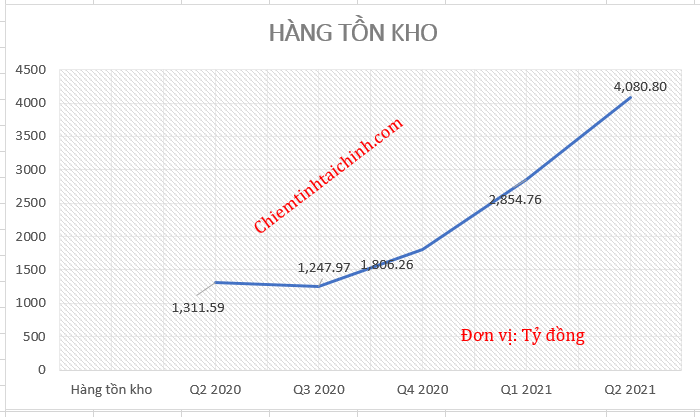 Hàng tồn kho trong nửa đầu năm đã tăng hơn 2,2 lần, đạt trên 4.080 tỷ đồng, chiếm 43% tổng tài sản.