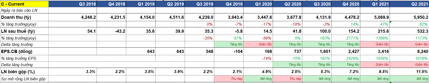 SMC vừa công bố BCTC quý 2/2021 với doanh thu hơn 5.952 tỷ đồng, tăng 62% so với cùng kỳ năm 2020. Khấu trừ giá vốn, Công ty thu về lãi gộp cao gấp 7,5 lên mức 682,5 tỷ đồng. Biên lãi gộp cũng cải thiện đáng kể, từ con số 2,5% (quý 2/2020) lên 11,5% trong quý 2/2021.