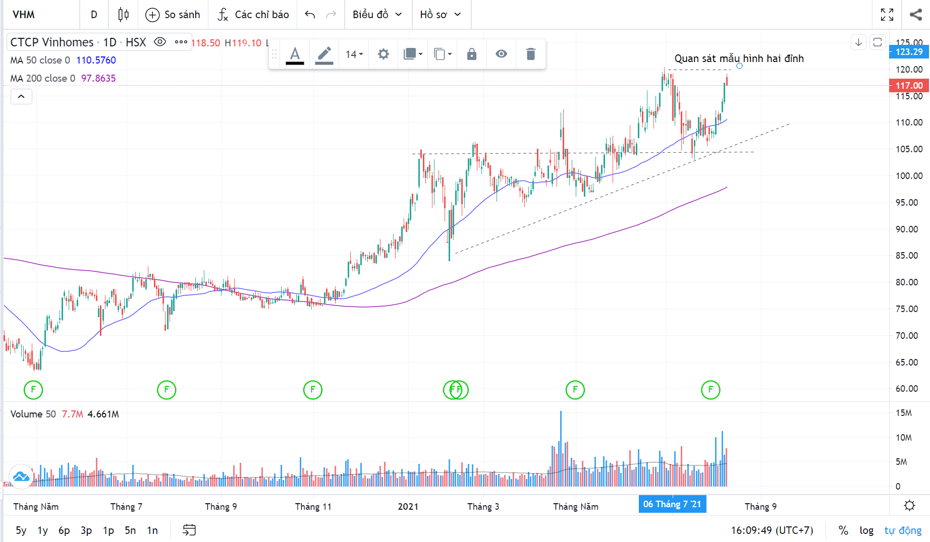 Họ nhà Vin như VHM được dùng để kéo chỉ số VN-Index lên, mang tới cơ hội đầu cơ cho cổ phiếu dòng midcap trên toàn thị trường. Nhưng VHM đang mệt mỏi khi đối diện với đỉnh giá cũ vào tháng 7, điều tạo nên nguy cơ mẫu hình hai đỉnh có thể xuất hiện nếu như không vượt qua được kháng cự này.
