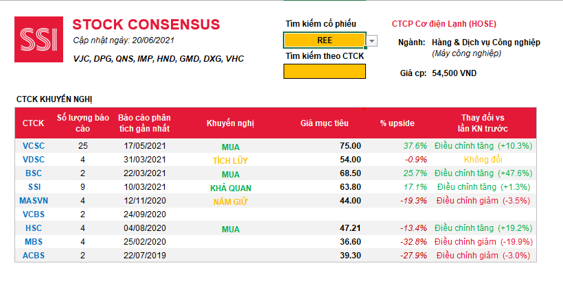 Thống kê của chúng tôi cho thấy, mục tiêu giá đồng thuận của các CTCK trong năm 2021 về REE là 65.000, cao hơn so với mức 45,000 vào tháng 11/2020. Theo phương pháp của phù thủy Mark Minervini, việc CTCK nâng triển vọng lợi nhuận và giá mục tiêu là chất xúc tác cho hành động giá cổ phiếu.