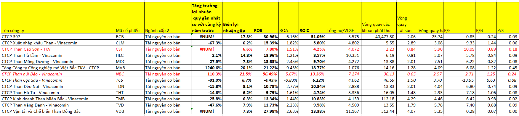 Tuy nhiên, nhà đầu tư cần hiểu sâu về đặc thù ngành than Việt nam. (1) trữ lượng các mỏ lộ thiên đã dần cạn, kể cả của NBC, dẫn tới (2) hệ số bóc đất tăng mạnh, chi phi khai thác than tăng (biên lợi nhuận của cổ phiếu than giảm đáng kể). (3) Đa phần các công ty than Việt Nam hoạt động khai thác theo kế hoạch và định mức được giao từ công ty mẹ Vinacomin. Khi giá than tăng, lợi thế nghiêng về công ty mẹ, các công ty con hưởng định mức lãi theo kế hoạch và theo quy mô doanh thu (khoảng 3% doanh thu).