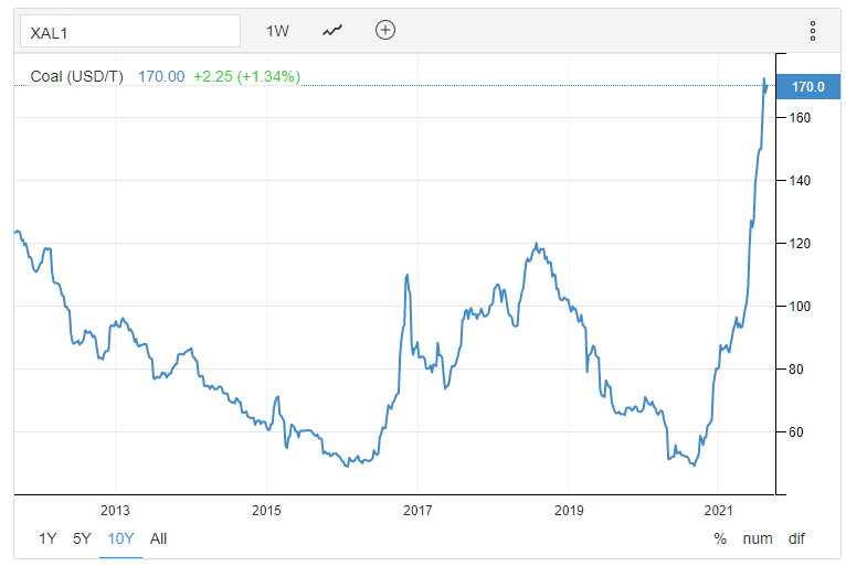Giá than thế giới tăng vọt trong năm 2021 vì nhu cầu luyện kim. Sau khi giá thép tăng vọt, đến lượt giá than cũng bị kéo theo. Cung về than cũng bị thu hẹp sau khi hai quốc gia xuất khẩu-nhập khẩu hàng đầu là Úc-Trung Quốc có mâu thuẫn. Nguồn cung cũng bị đứt gãy vì dịch Covid. Indonesia, quốc gia xuất khẩu Than hàng đầu của Đông Nam Á đang chìm sâu trong dịch Covid.