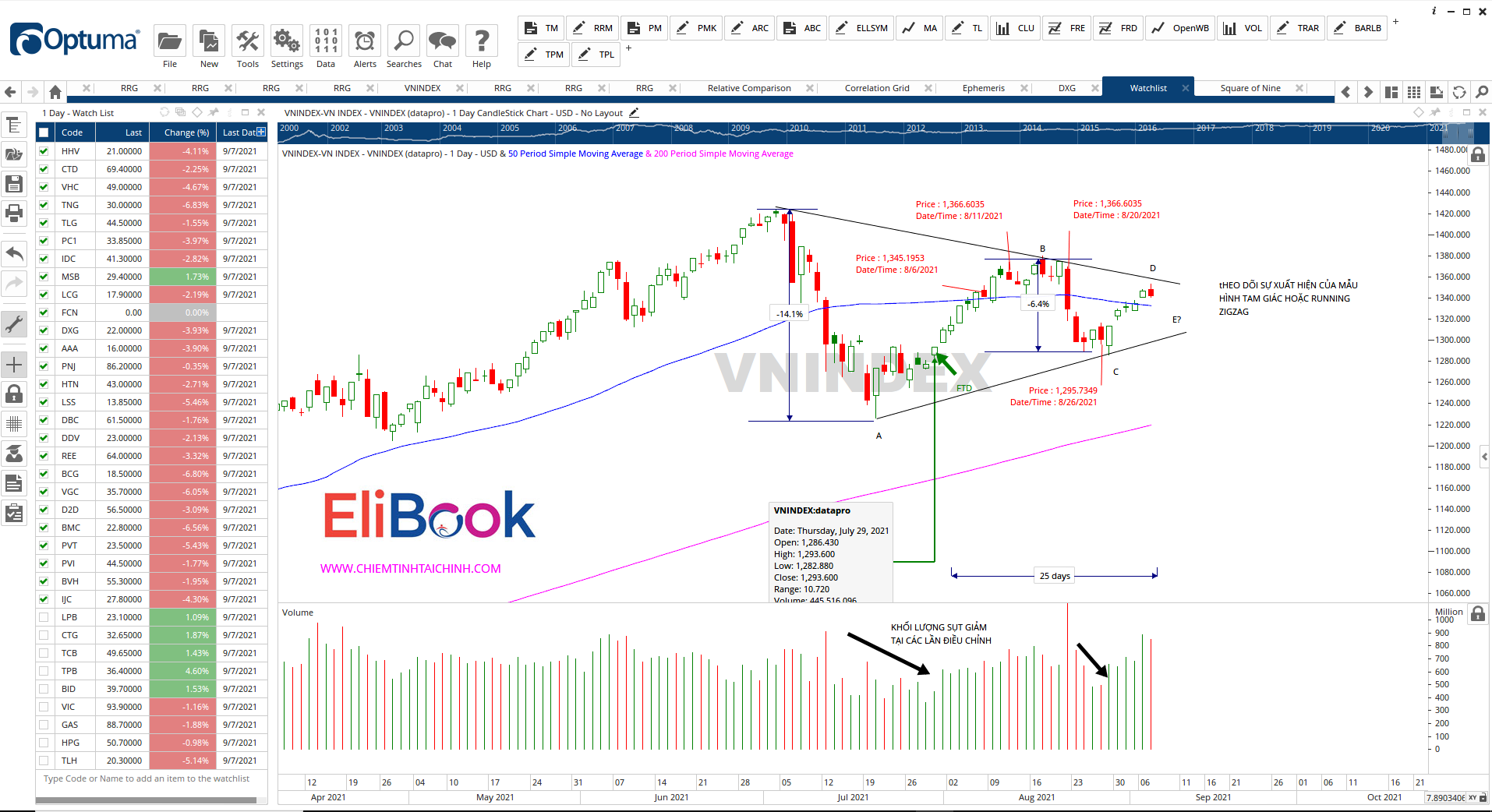 Bảng phân ngành ICB của Fireant. Dữ liệu ngày. Tính toán dựa trên phần mềm Optuma