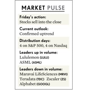 Maravai LifeSciences (MRVI) giảm gần 12% và đóng cửa dưới MA50 ngày, tạo nên tuần tồi tệ đối với cổ phiếu công nghệ sinh học. Công ty này bắt đầu bị bán tháo vào ngày thứ tư, khi nó thông báo phát hành thêm 20 triệu cổ phần. Vào ngày thứ sáu, Maravai đưa ra giá phát hành 50 USD, thấp hơn 6% so với mức giá đóng cửa ngày thứ năm là 53.35.