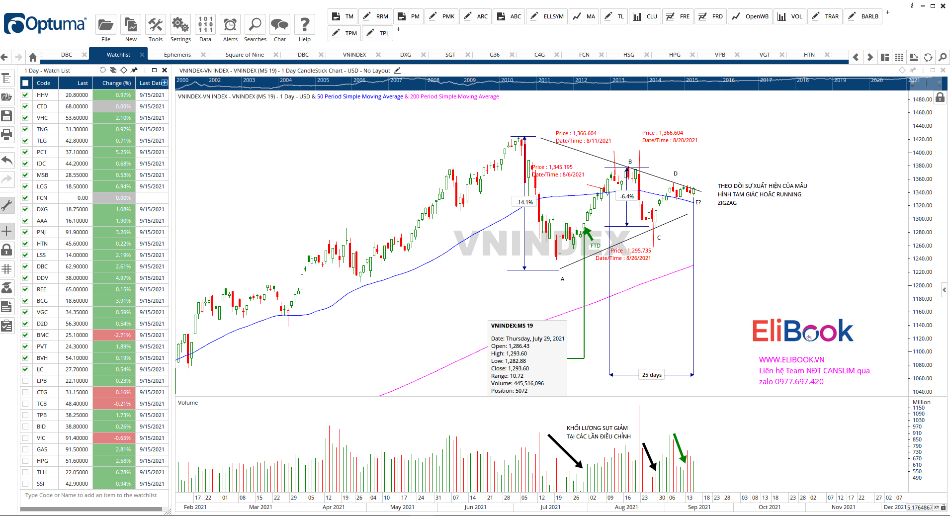 Nhóm xi măng có BCC +7% và tiếp tục chuỗi tăng giá ấn tượng gần +30% từ điểm bật nảy (bounce) từ MA10 ngày được thông báo trong bản tin Nhịp Đập Thị Trường ngày 27.08.2021. Nhóm ngành điện với PC1 +5%, TV2 +3.4%, BCG +3.9% (chủ yếu là năng lượng tái tạo). Cổ phiếu BCG vẫn được Team NĐT CANSLIM nắm giữ với suất sinh lợi +52% từ điểm mua breakout mẫu hình VCP ngày 2.08.2021. Đặc thù của một cổ phiếu dẫn dắt là tìm kiếm các điểm hỗ trợ tại các đường MA quan trọng. BCG lần thứ hai bật lên từ MA20 ngày và chúng tôi chưa có lý do bán khi đường hỗ trợ quan trọng này chưa bị phá thủng. (). Nhóm thủy điện như REE, VSH, PGV gần như xanh nhẹ.