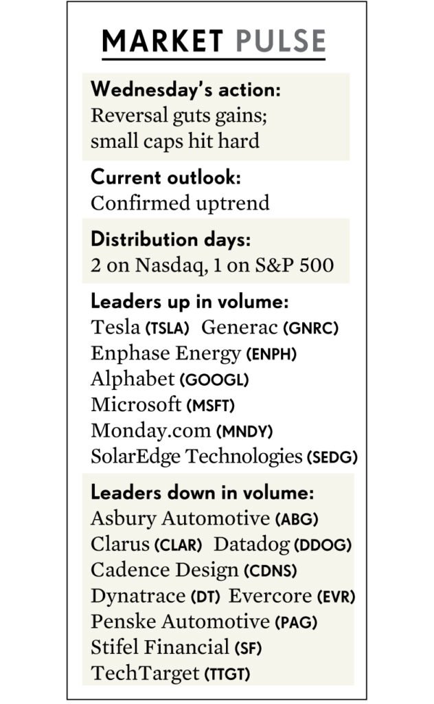 Chỉ số Nasdaq Composite trượt vỏ chuối phiên thứ hai liên tiếp khi mức lãi đầu phiên giao dịch ngày thứ tư lại biến mất vào cuối phiên. Nhưng các cổ phiếu vốn hóa nhỏ thực sự đã có cố gắng.