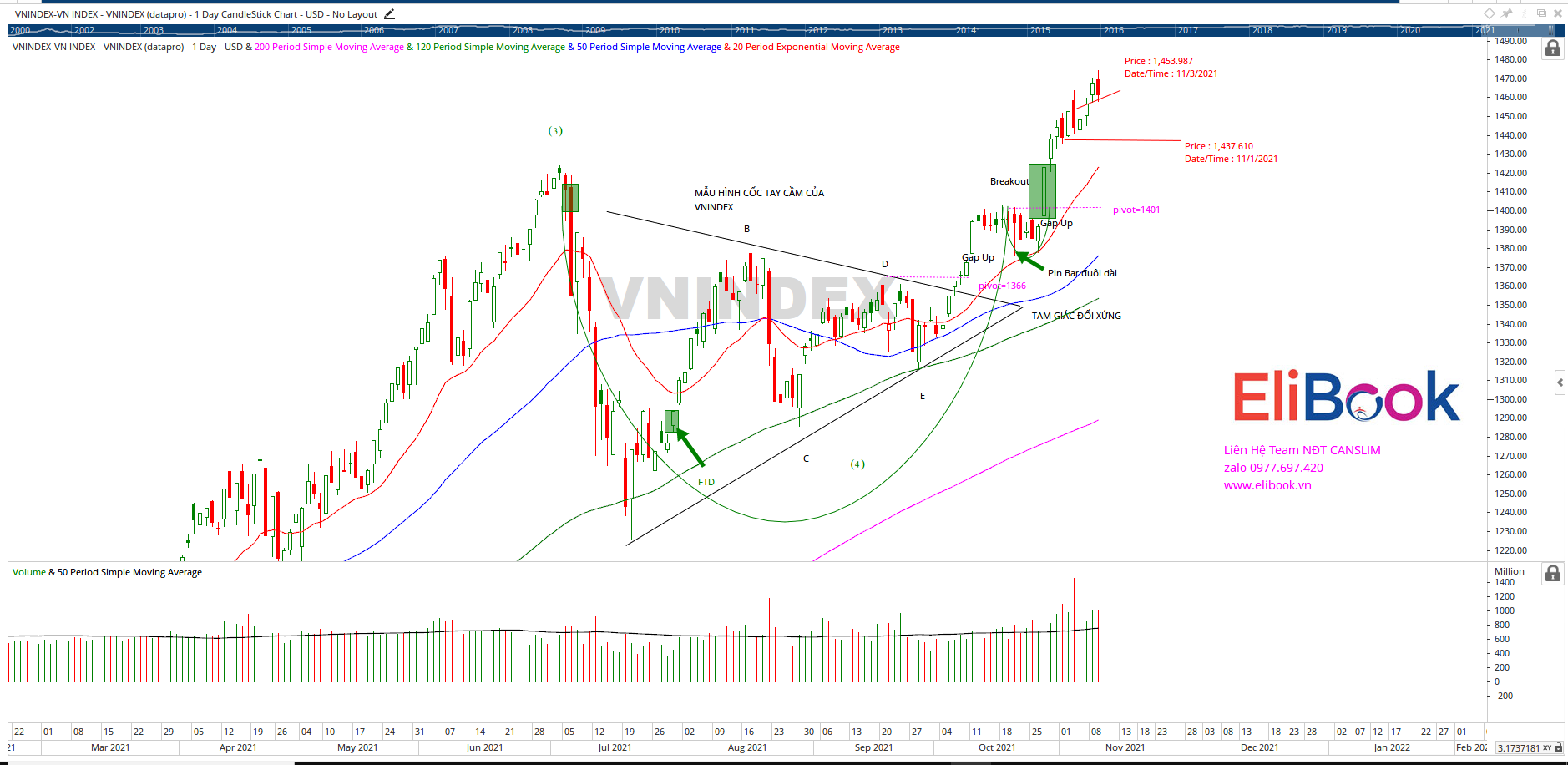 Nhóm xây dựng hưởng lợi từ đầu tư công như HHV +8.5% và tạo điểm breakout mẫu hình Chiếc Cốc Tay Cầm. Đây là cổ phiếu được Team NĐT CANSLIM khuyến nghị mua vào ngày 28/10/2021 theo điểm mua Pocket Pivot.