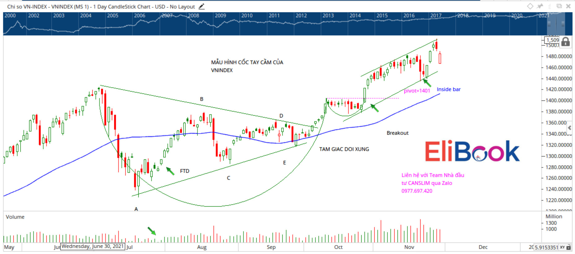 Dòng tiền đầu cơ quay trở lại với nhóm cổ phiếu dược và y tế khi thông tin chủng Covid mới được công bố. Hàng loạt cổ phiếu thuộc nhóm này tăng giá trần trong phiên giao dịch đầu tuần. Dường như cổ phiếu DBD đã biết trước được điều gì đó và thiết lập một mẫu hình Chiếc Cốc hoàn hảo. Cổ phiếu tiếp tục bật tăng mạnh mẽ sau phiên breakout thành công vào 24/11/2021. Hiện tại, DBD đang ở nền giá số 2 và điểm pivot: 54.9
