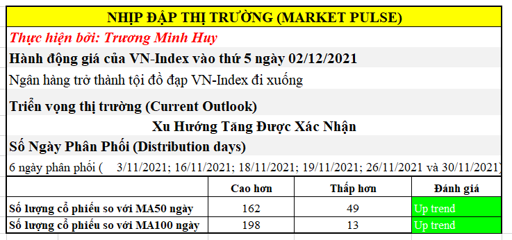 Chúng tôi đã phát đi thông điệp ‘THẬN TRỌNG” trong bản tin ngày hôm qua 1.12.2021 và tiếp tục duy trì thông điệp này ở bản tin ngày hôm nay. Quan điểm của chúng tôi cho rằng, thị trường chứng khoán Việt Nam đã tăng hơn 4 tháng kể từ ngày bùng nổ theo đà 29.7.2021 và nhiều cổ phiếu đã tăng giá cao trào, chạy nước rút, điều khiến các nhà đầu tư chuyên nghiệp phải học cách chốt lãi khi giá đang tăng.